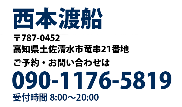 いつも西本渡船をご利用いただき誠にありがとうございます。 なんとか値上げせず頑張ってまいりましたが昨今の燃料高騰や諸経費の値上がりにより、2025年1月5日より旧価格3,000円を新価格3,500円に改定いたします。今後も西本渡船をよろしくお願いいたします。